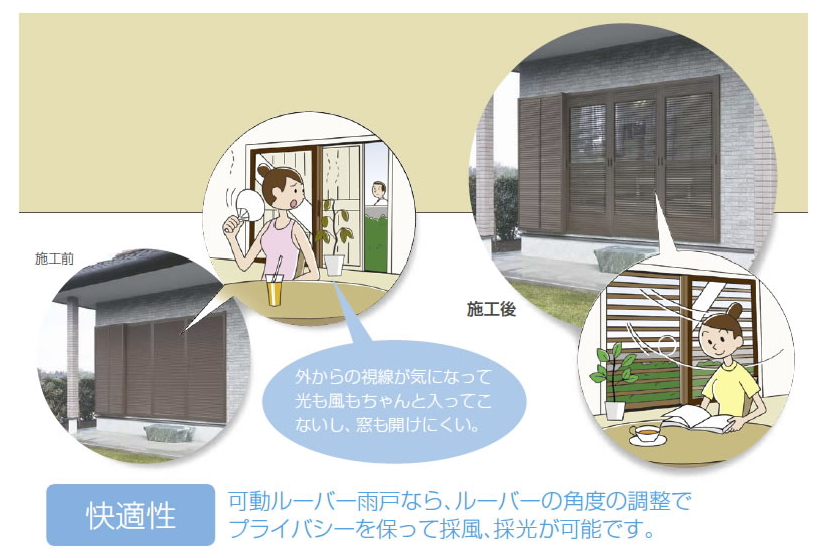 可動ルーバー雨戸なら、ルーバーの角度の調整で
